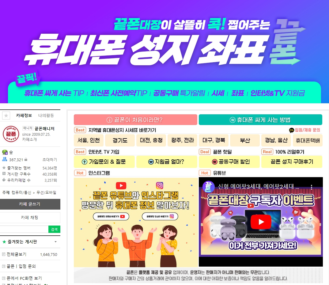 휴대폰용 성지는 벗겨진 형태로 판매되기 때문에 좌표 노출이 쉽지 않은 점도 있다. 다만, 성지휴대폰카페에 가입하시면 휴대폰성지 좌표, 가격표, 정보, 꿀팁 등을 알 수 있으니 편리하게 가입하시는 것을 추천드립니다.