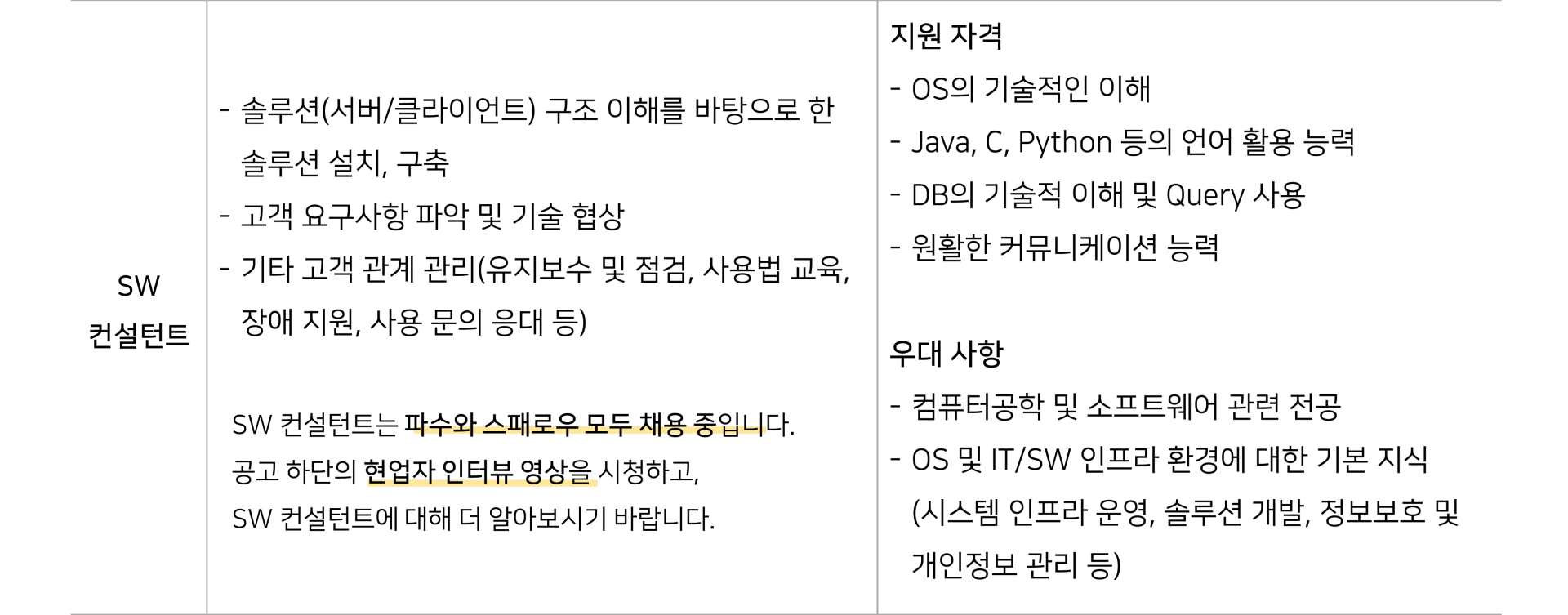 서류전형의 평가기준은 자격, 외국어능력, 학력으로 아래와 같습니다.