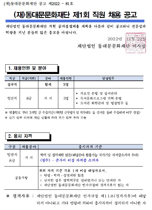 2) 지원자격 아래의 결격사유가 없는 한 누구나 지원할 수 있습니다.