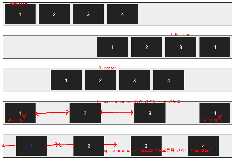 1. flexbox 요소의 위치에 대한 속성