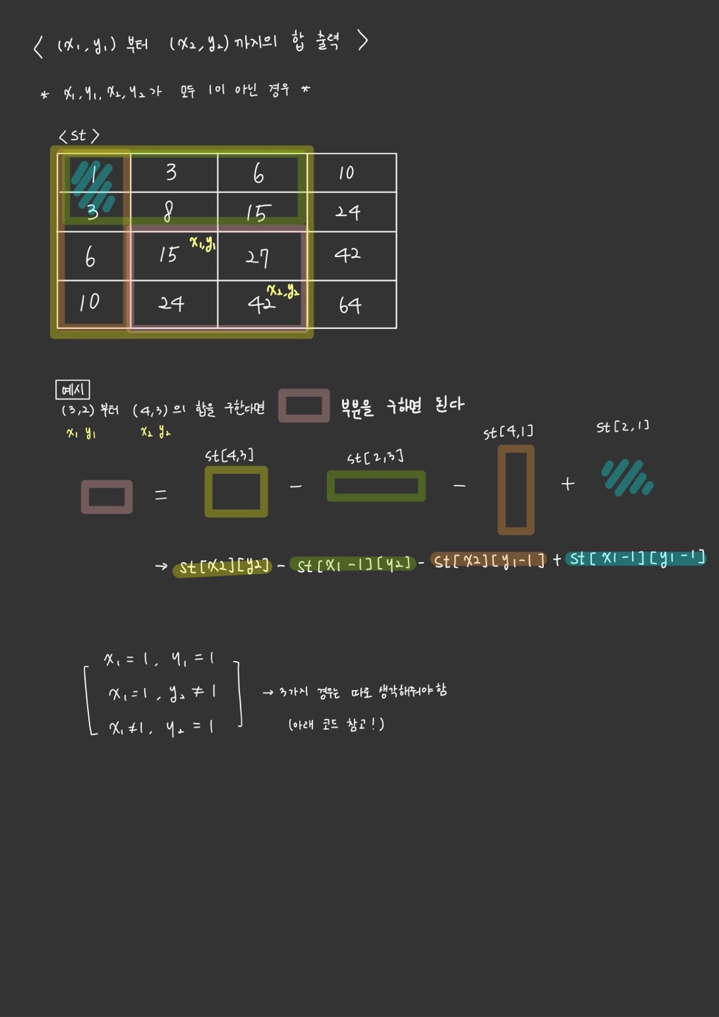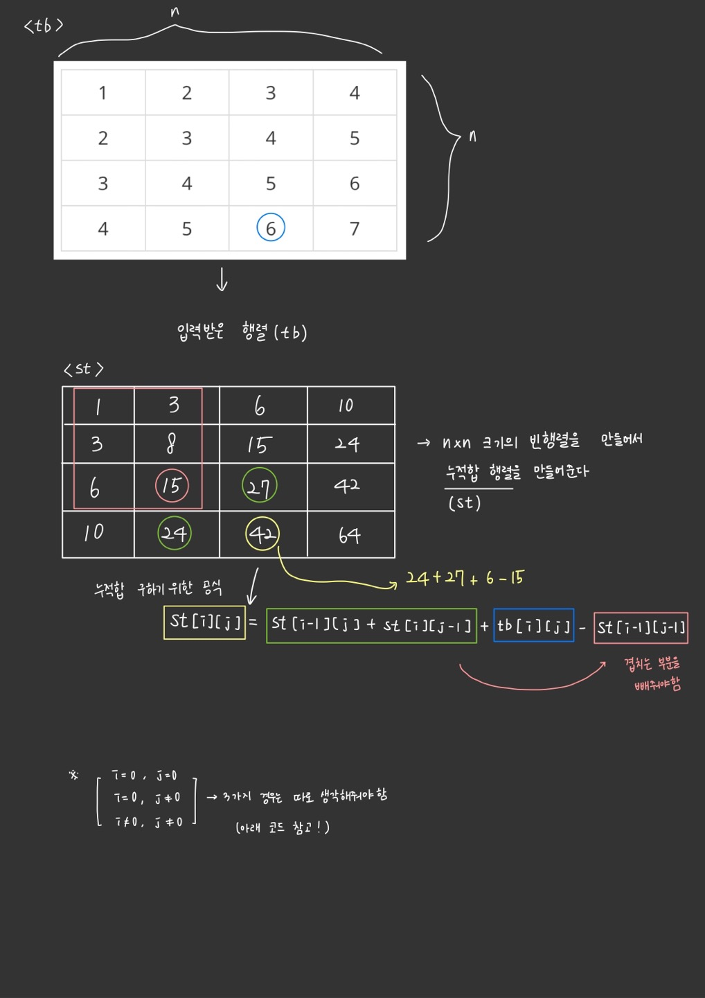 for문을 이용해 행렬 st에 누적합 값을 넣어준다.